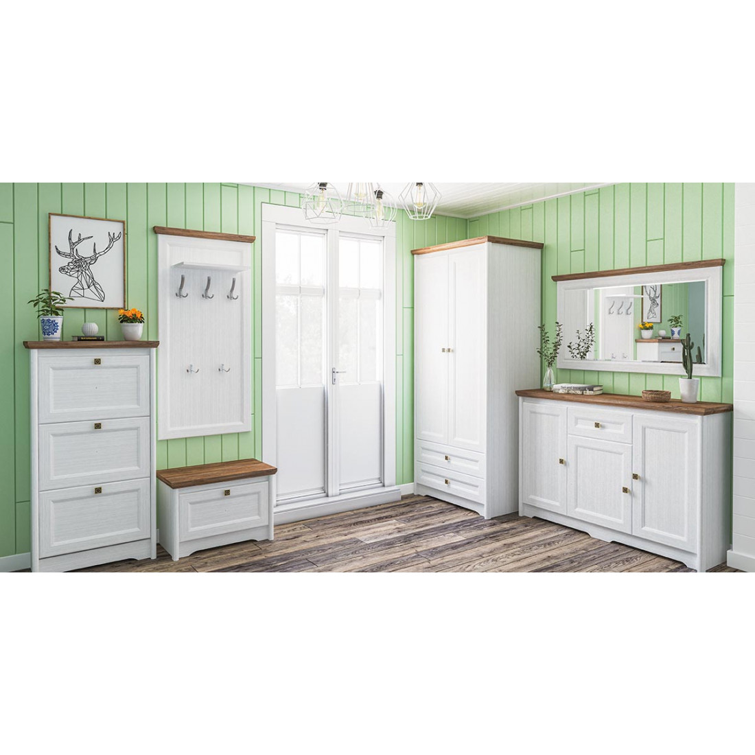 Классическая прихожая – это вовсе не громоздкая, массивная композиция, создающая в малогабаритной комнате ощущение замкнутости и тесноты. Убедиться в этом поможет полная легкости и изысканности модульная прихожая Тиволи от фабрики Мебель-Неман. Выполнена в очаровательном французском стиле, она предельна невосома и изящна, и в тоже время – вместительна и функциональна.