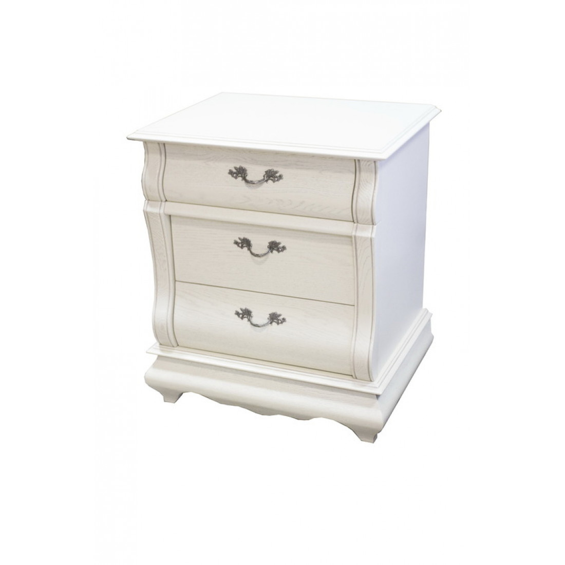 Прикроватная тумба с выдвижными ящиками входит в коллекцию мебели для спальни "Оскар" и имеет ее характерные стилистические особенности - оригинальную выгнутую форму фасада. Здесь нет флоральной резьбы, но растительный мотив прослеживается в фурнитуре ящиков. Модель выполнена из массива дуба и окарашена в классический оттенок "Орех".