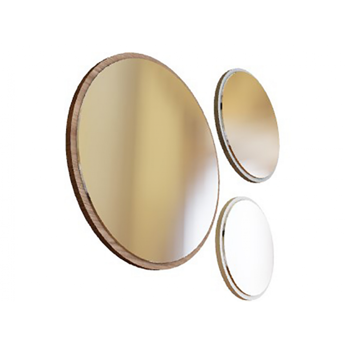 Комплект круглых зеркал на основе из ЛДСП разных цветов дополнит комод Mavenna, также может использоваться по-отдельности. Размер большого зеркала- 70х70 см, размер среднего- 50х50 см, размер маленького зеркала 40х40 см.